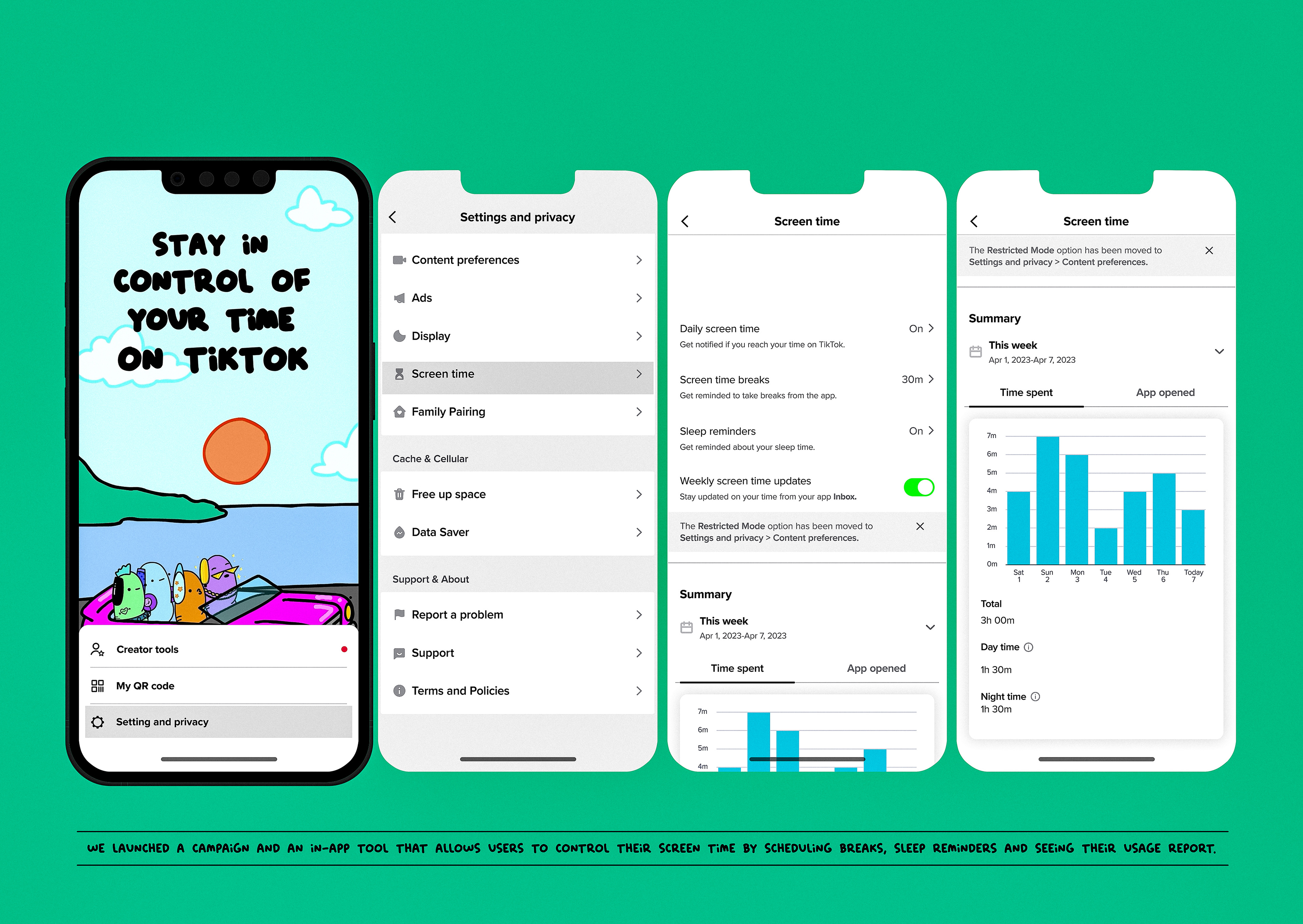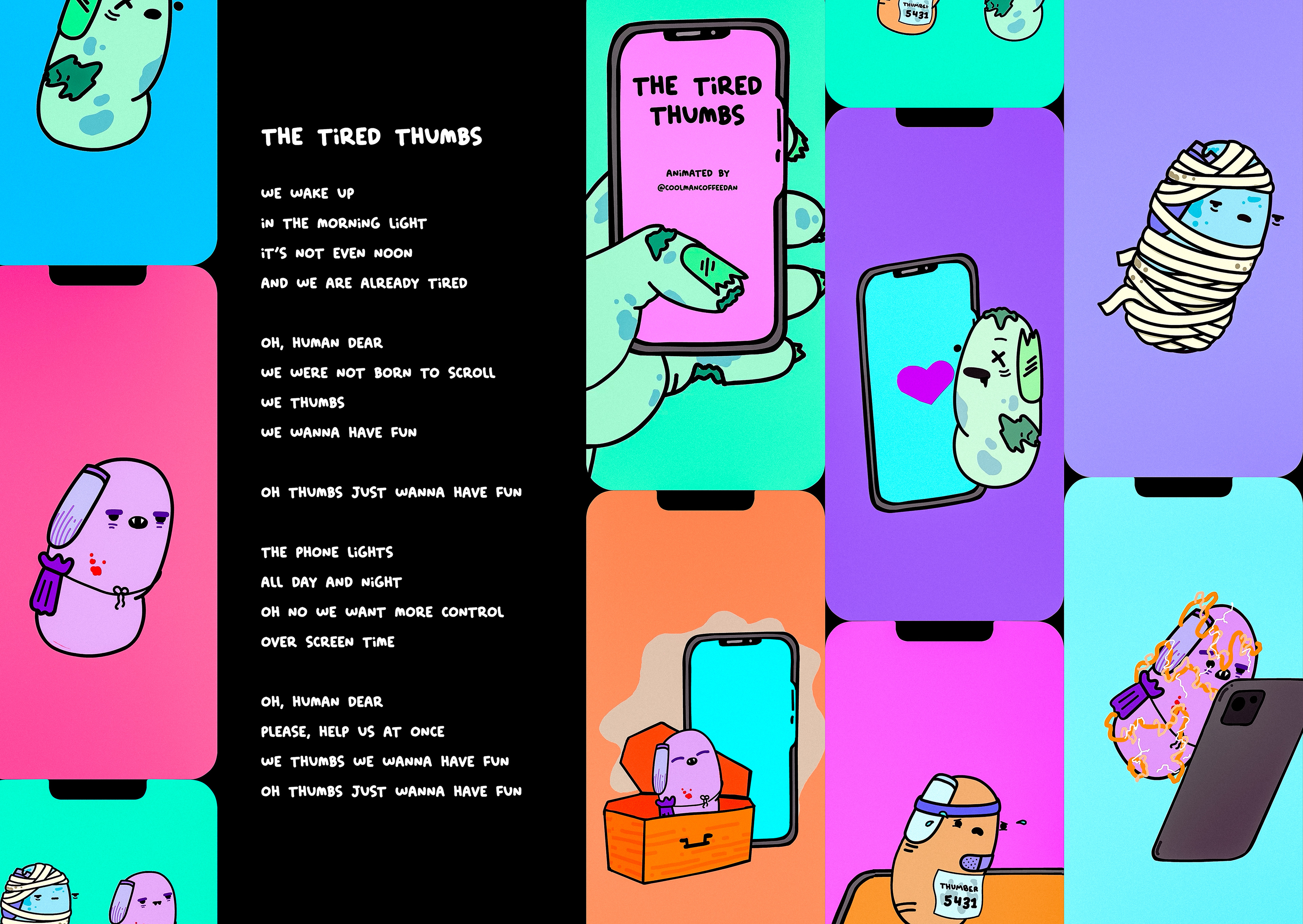 So, we created a campaign starring thumbs exhausted from scrolling, and an in-app tool that allows users to control their screen time by scheduling breaks, sleep reminders and showing their usage report.